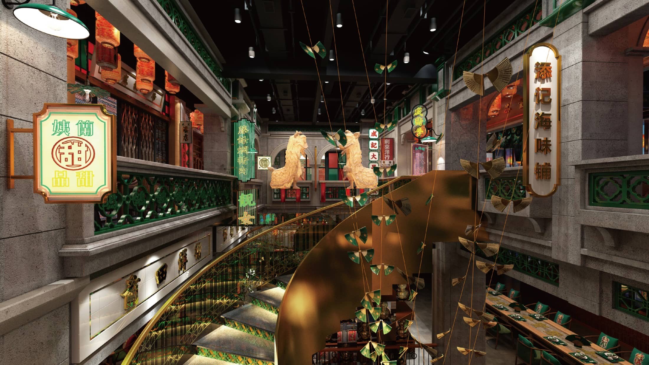比如在大鸽饭案例中,中国对联本身是静态的,我们结合了西方翻牌的工艺让很多牌子有节奏翻动,“吃广州吃乳鸽,吃乳鸽大鸽饭”的中英文表达来回切换。比如阵列式的扇子不停的开合,形成“小蛮腰”的造型。