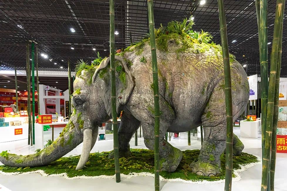 整体呈现出“山中有象、象中有山、茶在山中、山中有茶”的神奇状态,整个空间形成一个“云南动植物王国”的缩影。
