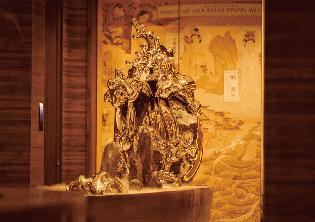 作为中国白茶引领品牌,空间的文化跑马圈地,借力“山海文化”用艺术雕塑演绎“海上丝绸之路”:海在船中,海中有山;海比山高,阴阳交感,以此表达守护心中山海。极具福建人文特色主题的茶空间,以福建名片,接待八方客。